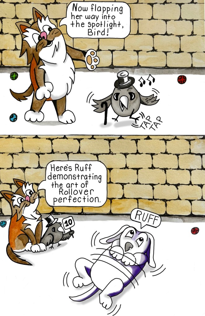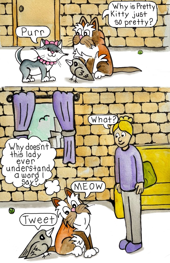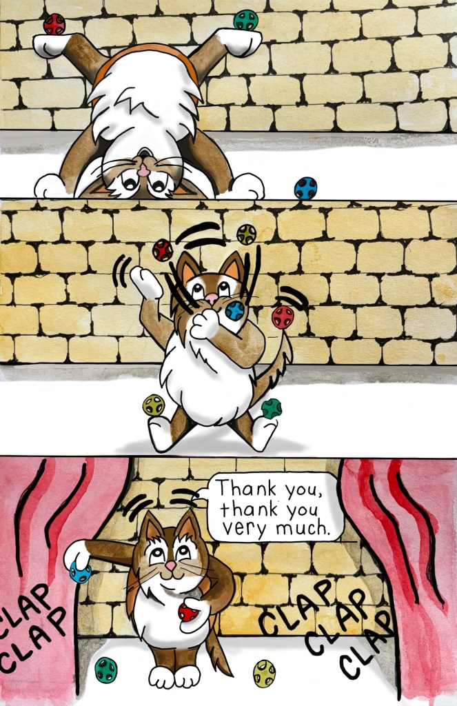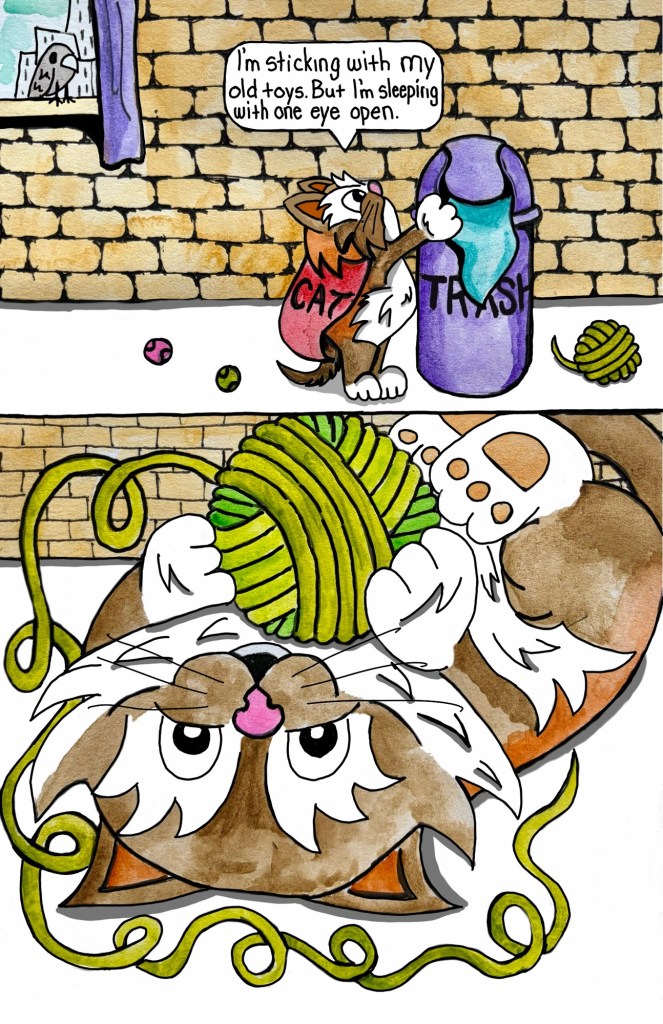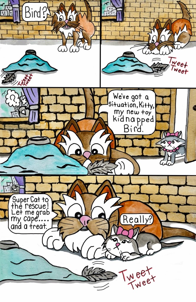 Now Stella spends her days exploring the high life in a big city: napping in sunbeams, judging pedestrians from a windowsill with her best friend Bird, and occasionally knocking over something very breakable and blaming the pretty kitty next door. She loves sharing her adventures, like the time she explored the scary hallway just to prove to her friends that the legend of the Hallway Monster was true. Was it true or just another silly story or both? Every day is an adventure… especially if Stella’s involved.